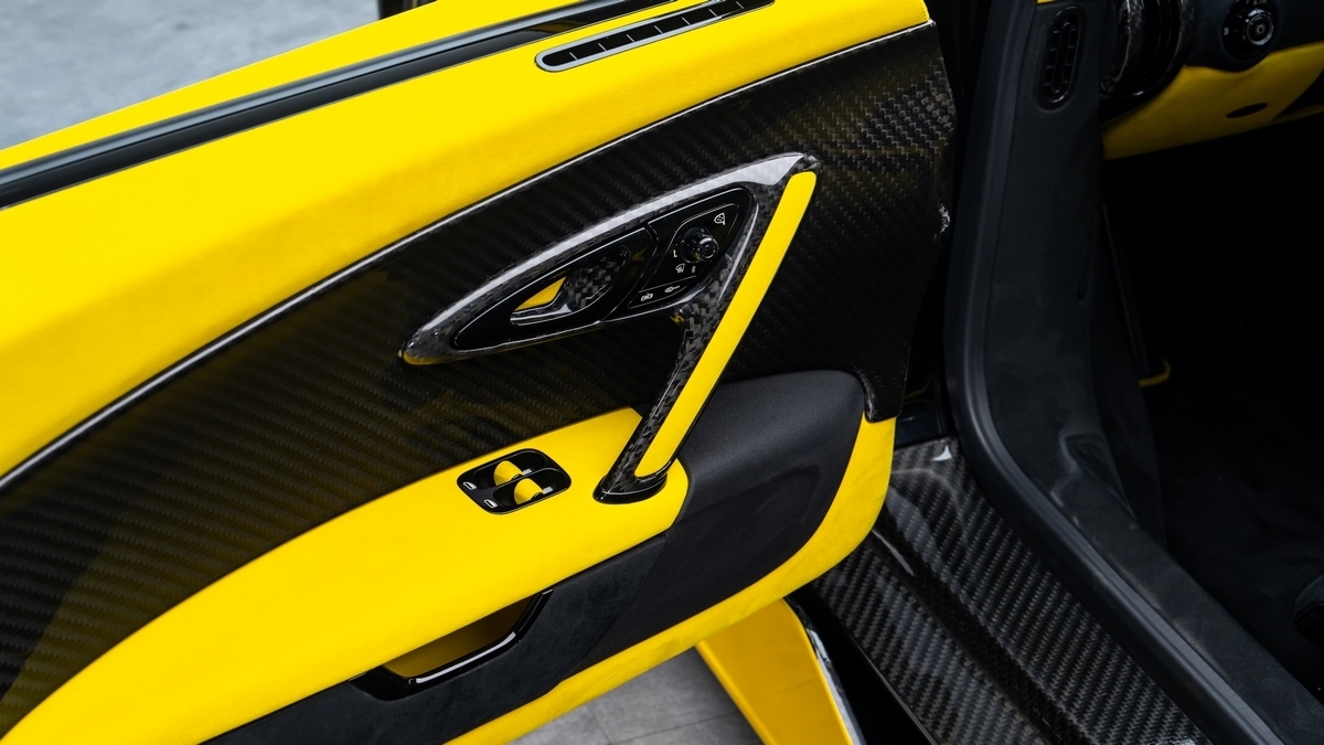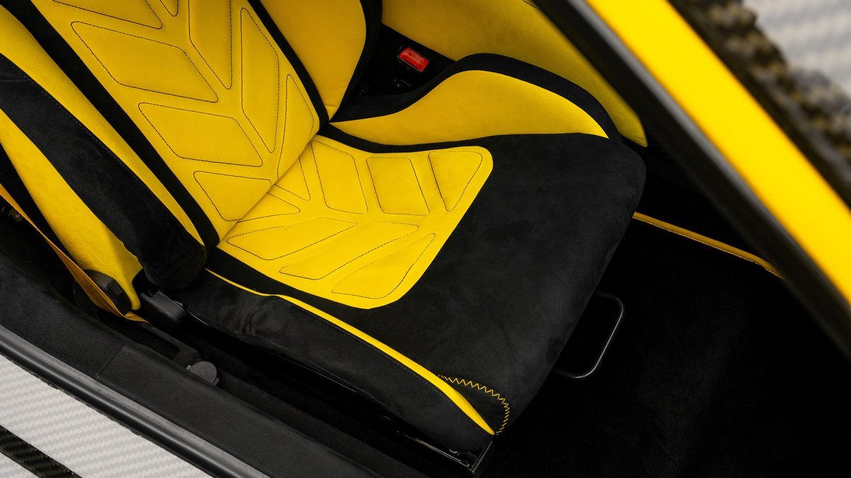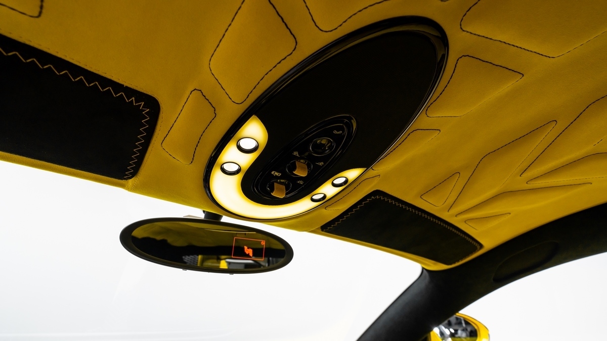 Inside, the cabin is reimagined with premium leather and vibrant yellow Alcantara, combining luxury with precision craftsmanship for an unparalleled driving experience.