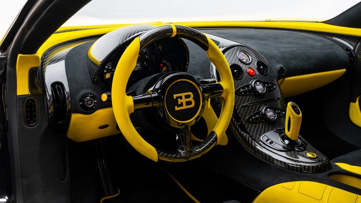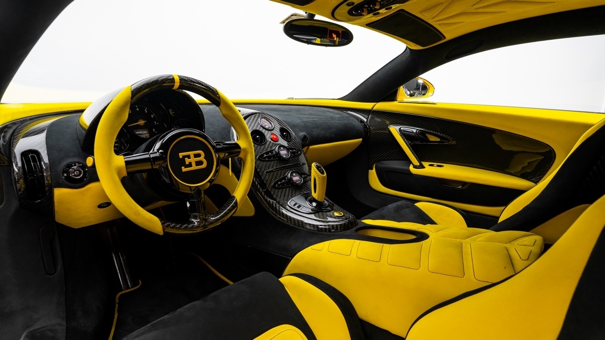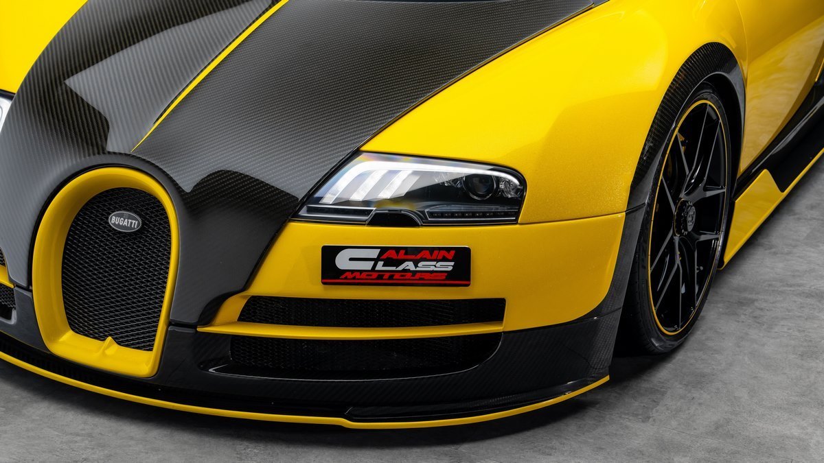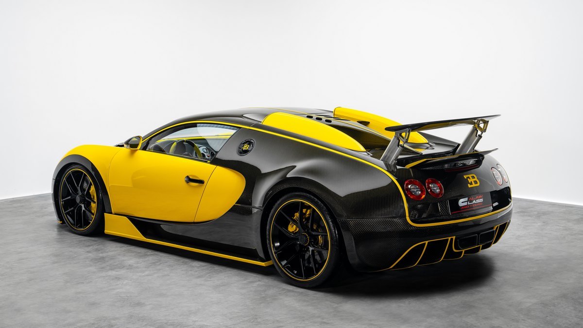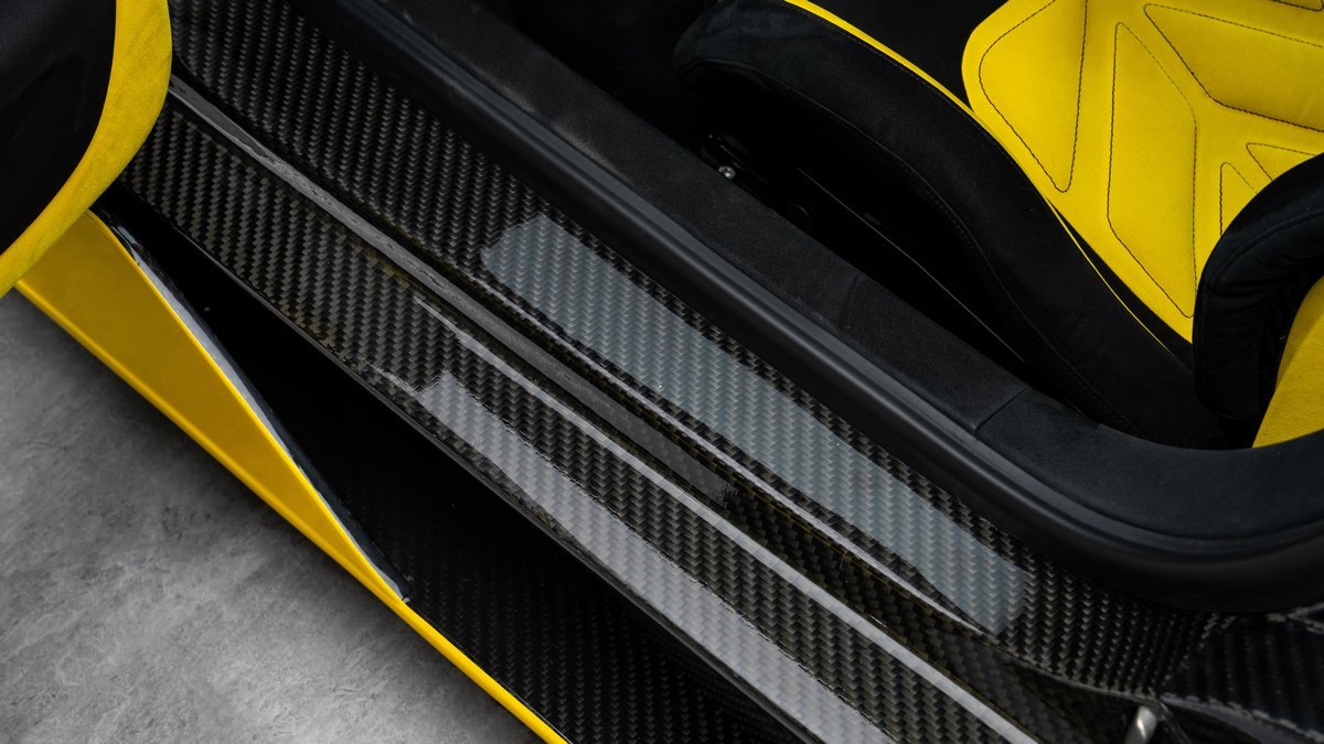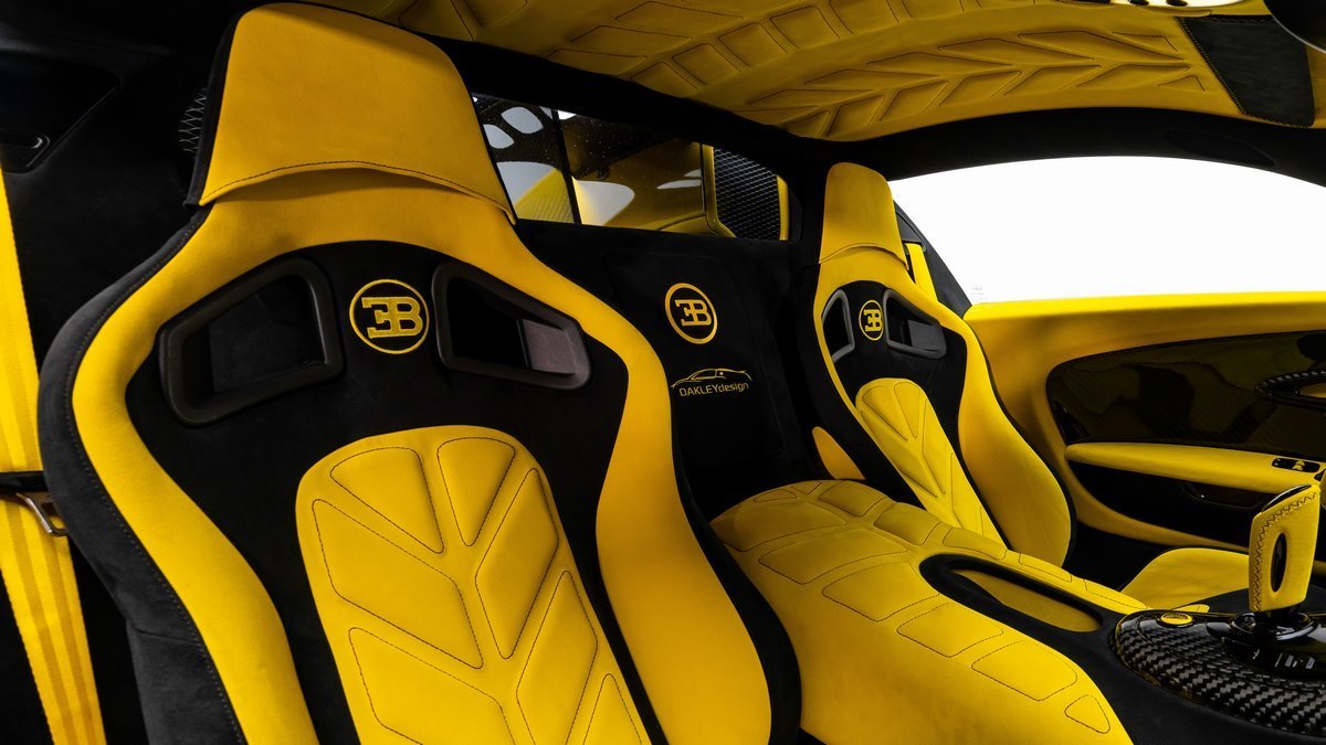 This unique Oakley Design Veyron is a true collector’s masterpiece, featuring a full exposed carbon body finished in striking yellow with metallic sparkle dust. Its bespoke exterior delivers an unmistakable presence, unlike any other Veyron in existence.