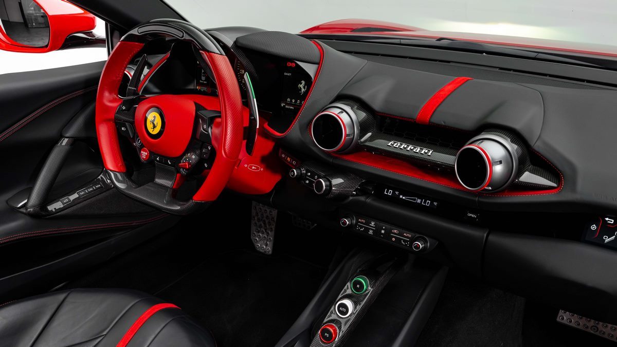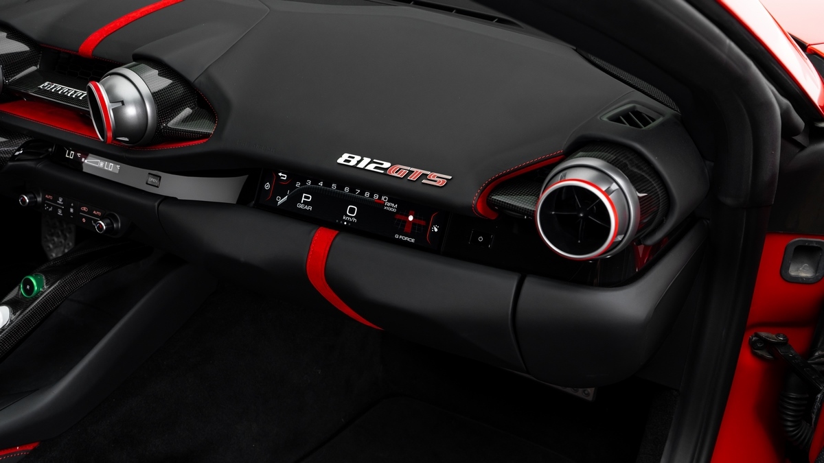 Ferrari 812 GTS Technical Details Model Year 2021 Mileage 19,187 Km Exterior Rosso Corsa Interior Nero | Alcantara Rosso Engine 6.5L V12 Power 789 HP Price AED 1,449,000 Technical Details Description GCC Specs CONFIGURATION EXTERIOR ROSSO CORSA DS 322 INTERIOR NERO 8500 MATS NERO 152 OPTIONS ACPL APPLE CARPLAY AFS2 ADAPTIVE HEADLIGHTS WITH SBL FUNCTION ALDT INT. DETAILS COLOURED IN ALCANTARA ALCANTARA ROSSO FX CALY YELLOW BRAKE CALIPERS CEAI FRONT PART OF FRONT BUMPER IN CARBON FIBRE CIDL CARBON FIBRE DRIVER ZONE+LEDS CILR CARBON FIBRE CENTRAL BRIDGE CISK EXTERIOR SILL KICK IN CARBON CSB1 COLOURED SAFETY BELTS YELLOW DATR DASH INSERTS IN CARBON FIBRE ELEV SUSPENSION LIFTER EMPH CAVALLINO STITCHED ON HEADREST ROSSO 0504 FCWS CARBON FIBRE FRONT SPOILER LOGO 'SCUDERIA FERRARI' SHIELDS PAC1 PARKING CAMERA PDIS PASSENGER DISPLAY RPMY YELLOW REV. COUNTER RSFD 20" FORGED DIAMOND WHEELS RSFE FULL ELECTRIC SEATS SIEE EE FUNCTIONALITY SNDB HIGH POWER HI-FI SYSTEM STC2 COLOURED SPECIAL STITCHING O.R. ROSSO 0504 STW1 COLOURED STEERING WHEEL ROSSO FERRARI 130421 TYPP PIRELLI TYRES Car Photos Inquiries For more information or any Inquiries, kindly fill the form. Full Name Email Address Phone Number Please send me news & updates. Message You may also be interested in Ferrari 599 GTO Used Ferrari Purosangue New Ferrari Purosangue New