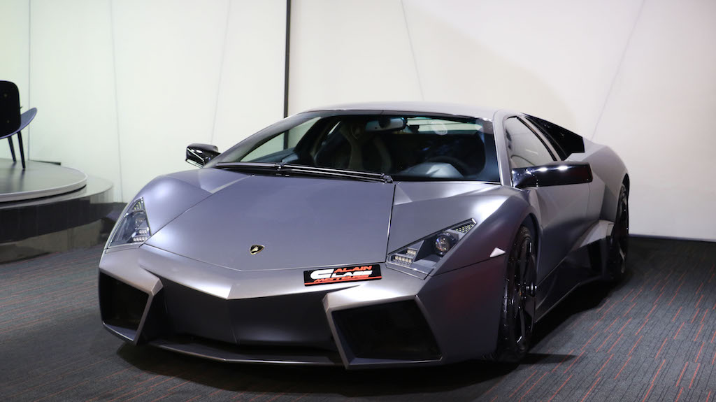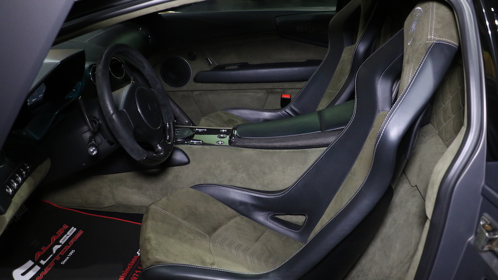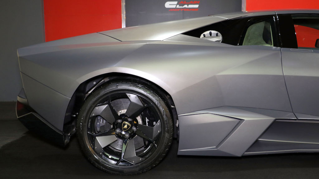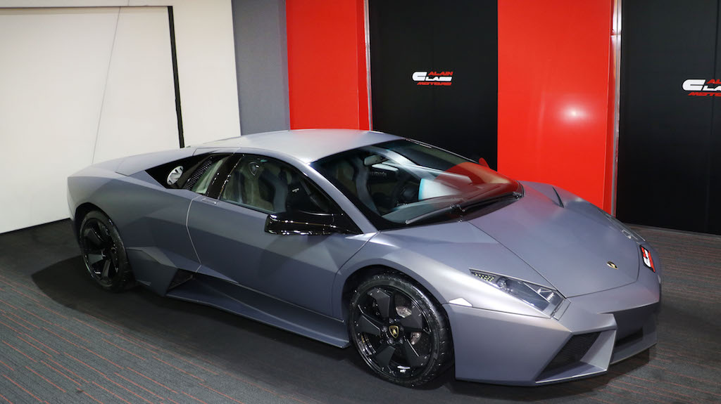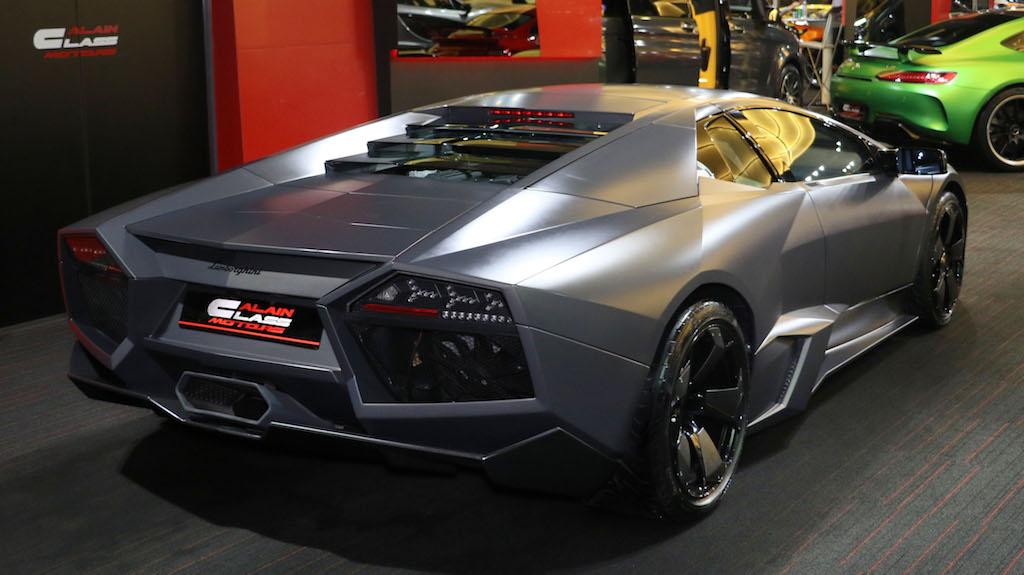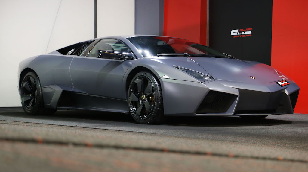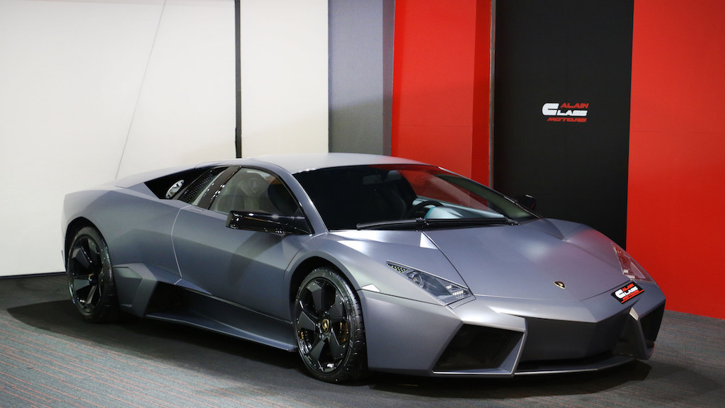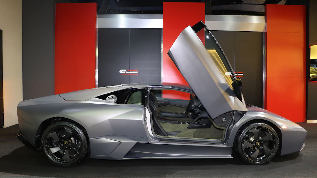 The Lamborghini Reventón is a mid-engine sports car that debuted at the 2007 Frankfurt Motor Show. It was the most expensive Lamborghini road car until the Lamborghini Sesto Elemento was launched. Its top speed was recorded in UAE at 221 miles per hour (355.7 km/h). The official press release stated that only 20 vehicles would be sold to the public with one additional car (marked as 00/20) produced for the Lamborghini museum. Each Reventón is stamped with its number in the sequence of 20 between the driver's and passenger's seats.