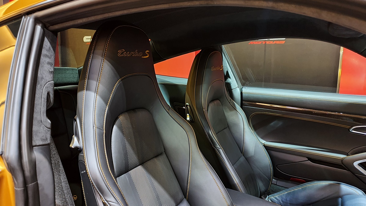The Turbo S Exclusive Series is loaded with the Aerokit, new rear fascia, black calipers, new exhaust, and Porsche Exclusive Manufaktur fender plates. For maximum attention, the Exclusive Series can be had with a new, "exclusive" Golden Yellow Metallic paint that matches the new black wheels and interior accents.
