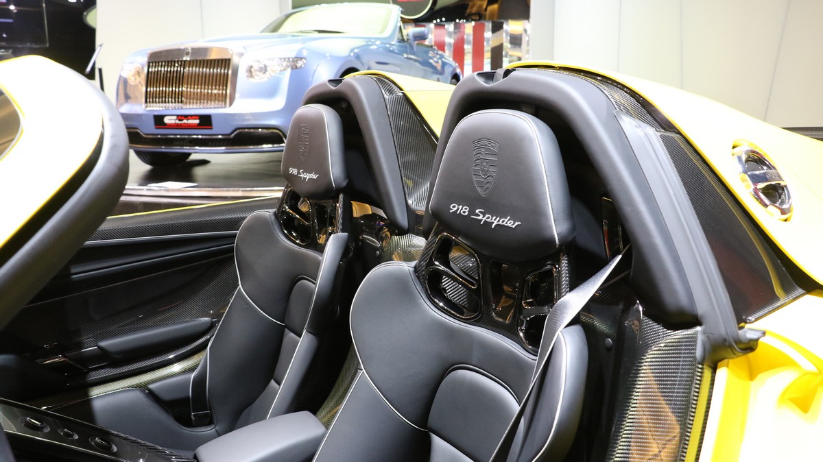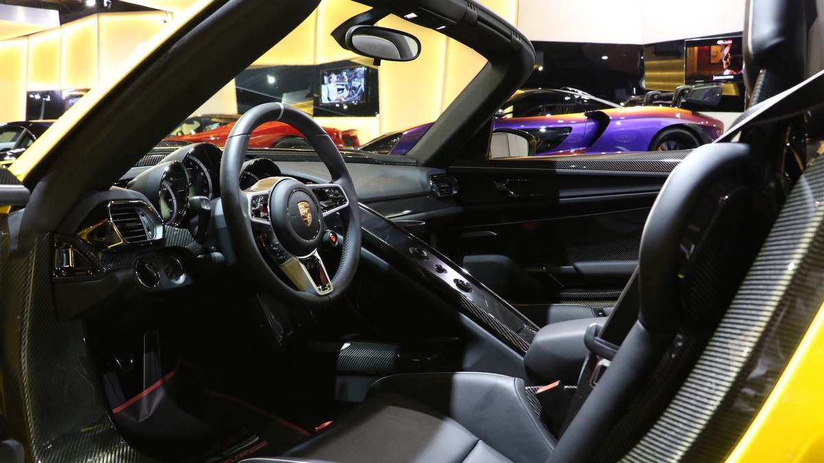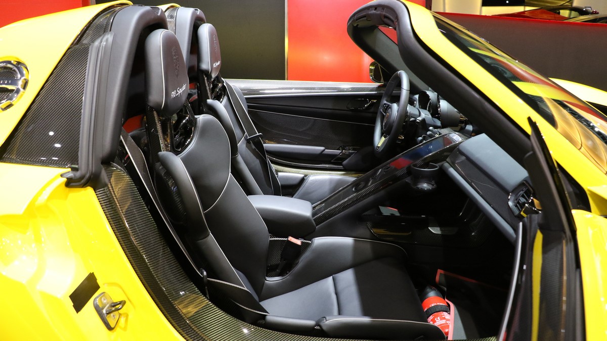 Safety features on the 2015 Porsche 918 Spyder include anti lock carbon-ceramic brakes, stability and traction control, seat-mounted thorax-protecting side airbags and door-mounted head-protecting side airbags.