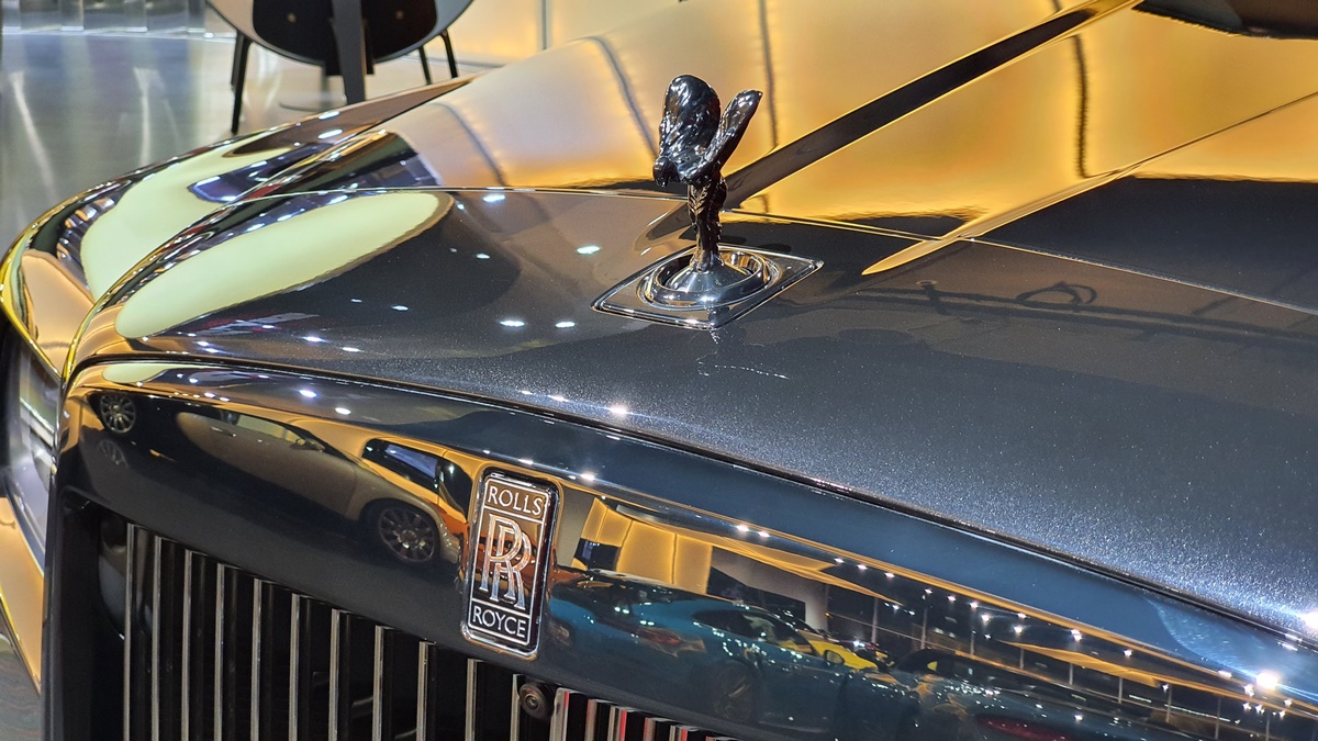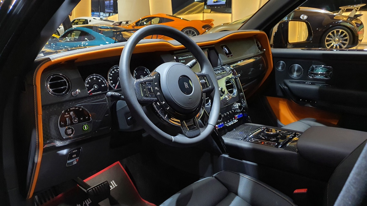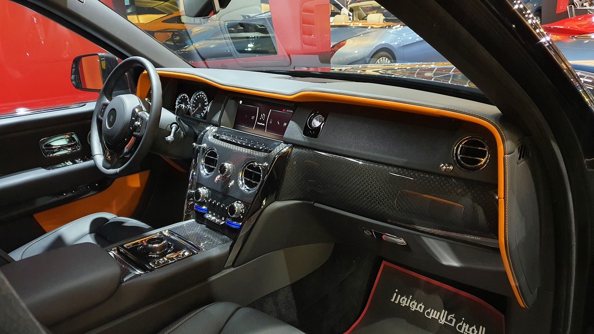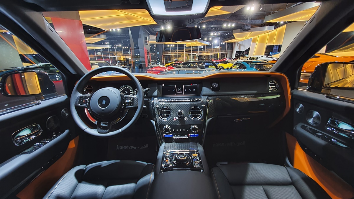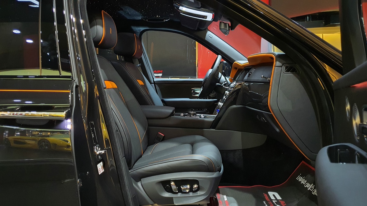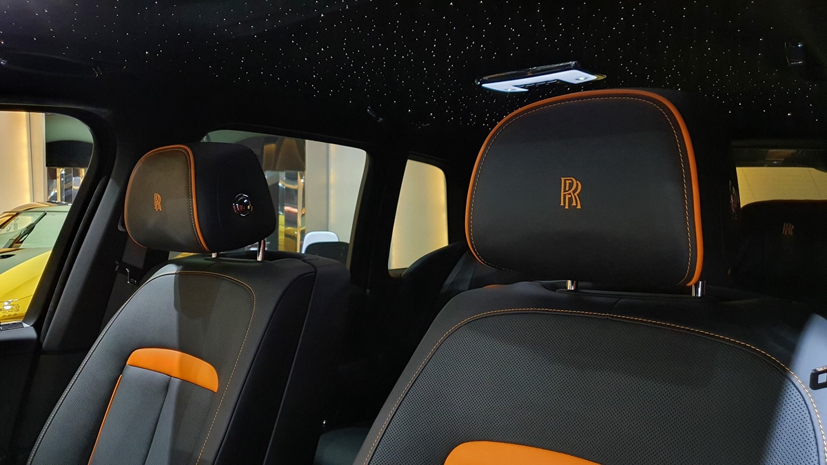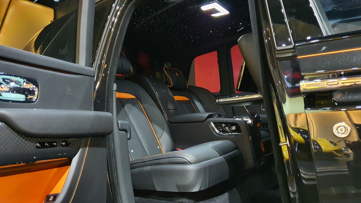 It all starts with the outside of the vehicle. Deep blacks that are painstakingly created and used can be found in the enormous grille, 22-inch rims and Rolls-Royce’s Spirit of Ecstasy statue on the front. These dark flourishes play exceptionally well.